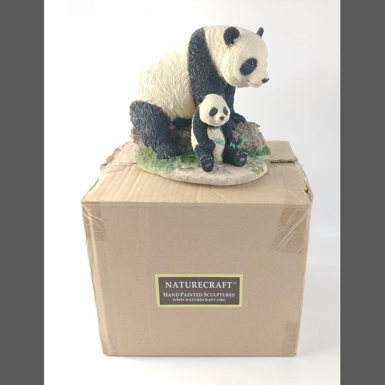 For lovers of hand-painted animal sculptures. A beautiful NATURECRAFT L20cm x W15cm x H18cm sculpture of a PANDA and cub.