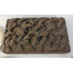 A collection of decorative items to include one wooden gavel hammer approx. L17cm, an intricately carved Asian wooden box with two compartments approx. L20cm x W12cm x H6cm, a 24K gold-edged black Japanese Chokin plate approx. 16cm diameter, a 24K gold-edged cream Japanese Chokin plate approx. 11cm diameter, and a round compact mirror with image of Mary Queen of Scots on back approx. 8cm diameter.