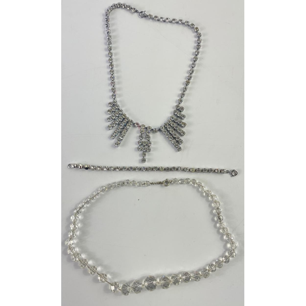 A string of crystal beads approx 42cm and a necklace with clear stones approx 40cm long and a matching bracelet approx 16cm