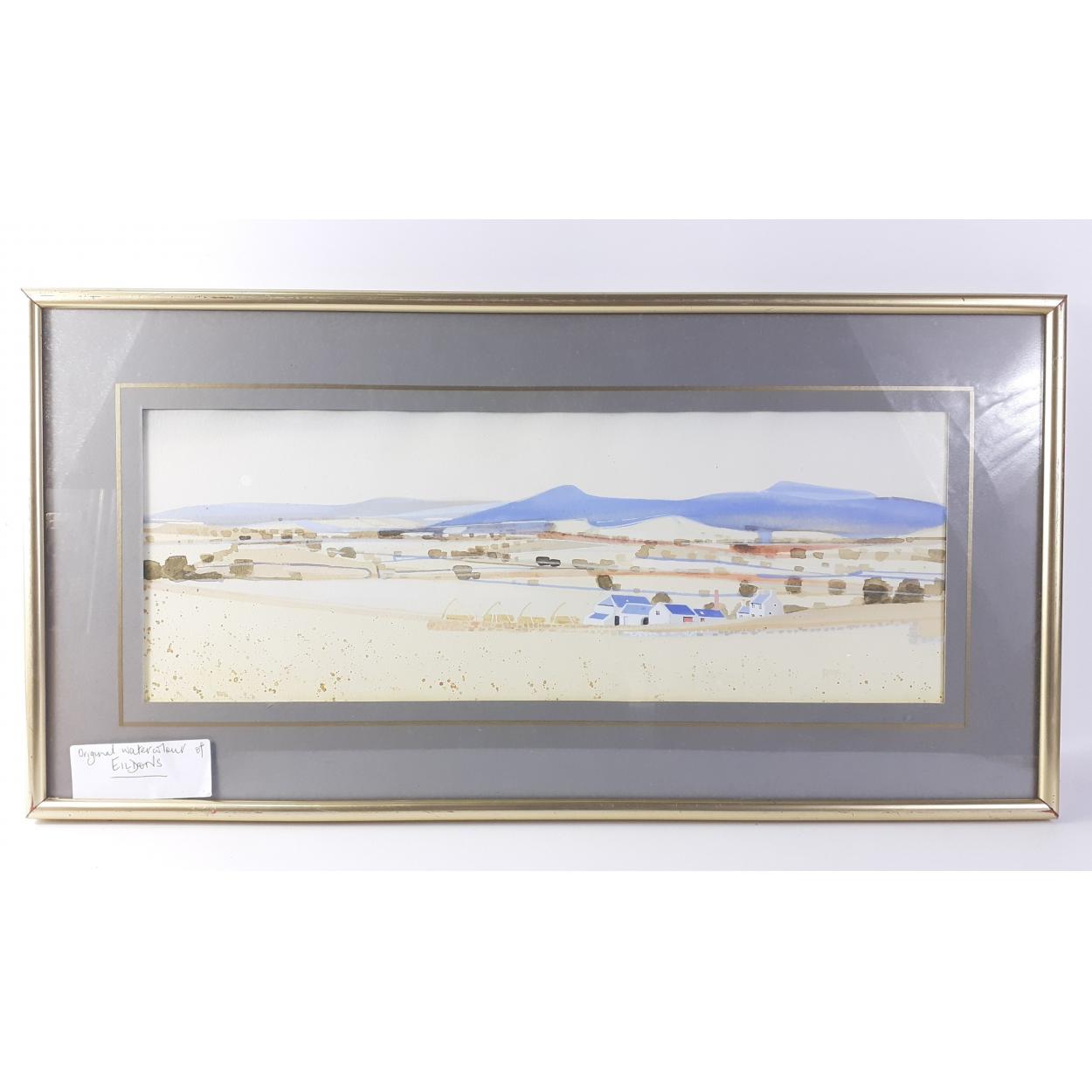 For the LOVERS of SCOTTISH BORDERS ARTISTS and ARTWORKS! An original watercolour painting by an artist with surname ROSS of the Eildon Hills. Size of painting measures approx. 51cm in length x 19cm in height. Gilt frame measures approx. 66cm in length x 33cm in height.
