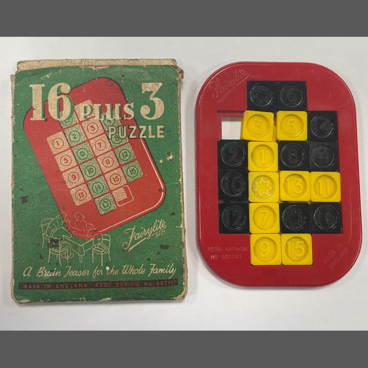 VINTAGE 16 plus 3 PUZZLE GAME - ' A brain teaser for the whole family' - all original packaging sleeve - dimensions 11.5cm x 8cm approx