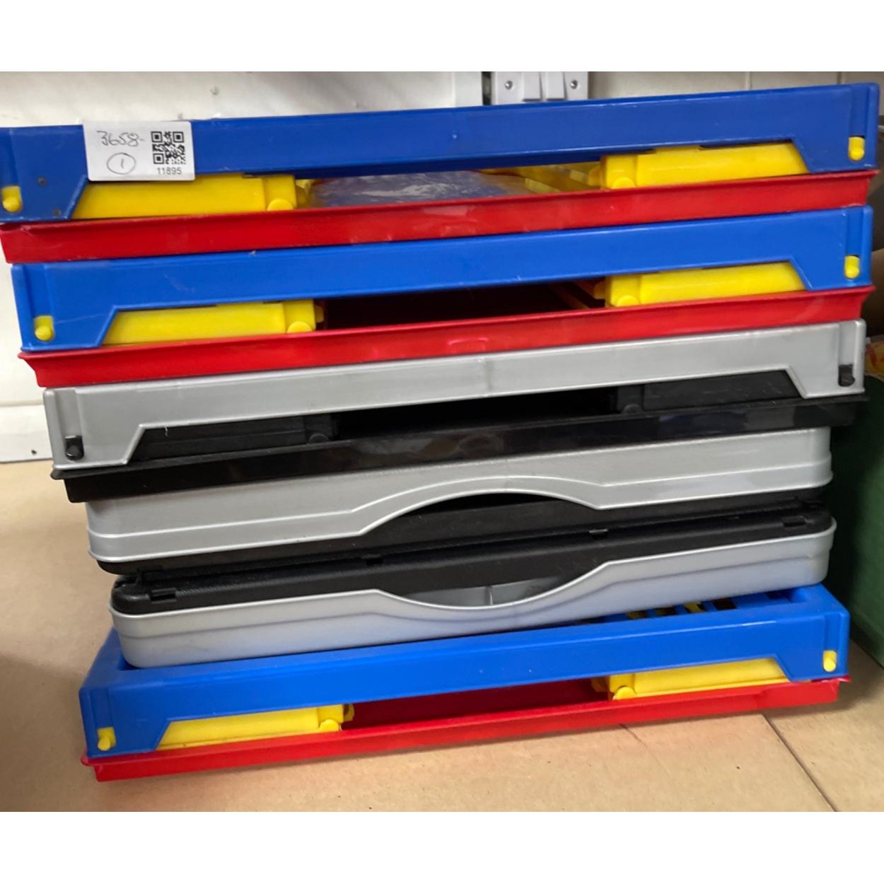 Always handy for a multitude of storage purposes - 3 red/blue/yellow collapsible crates and 3 in black and gray