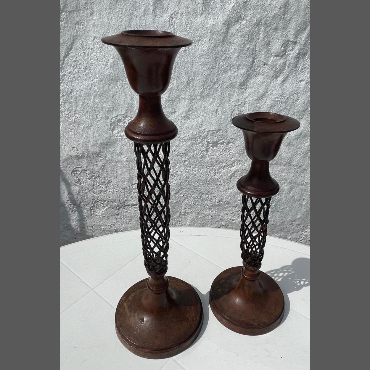 Two unusual finely made metal candlesticks from Hong Hong 32cm and 25cm high