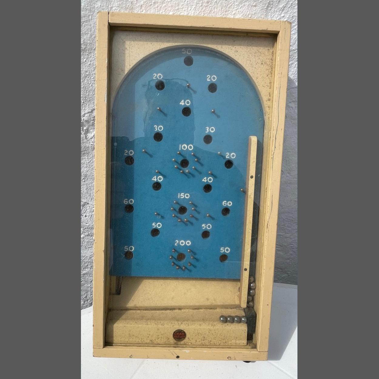 A handy-sized CHAD VALLEY mid-century wooden BAGATELLE game 29x15x5.5cm complete with balls