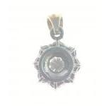 A beautiful diamond (tested) pendant on a 585 stamped lsuspensionring. The pendant 1cm wide consists of a central stone surrounded by 8 smaller stones in a star shape, gross weight 1.09g approx