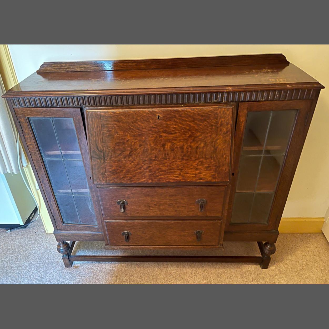 An unusual VINTAGE display cabinet with a built in bureau and two deep drawers - dimensions 4ft width x 14" depth x 3.25ft height approx