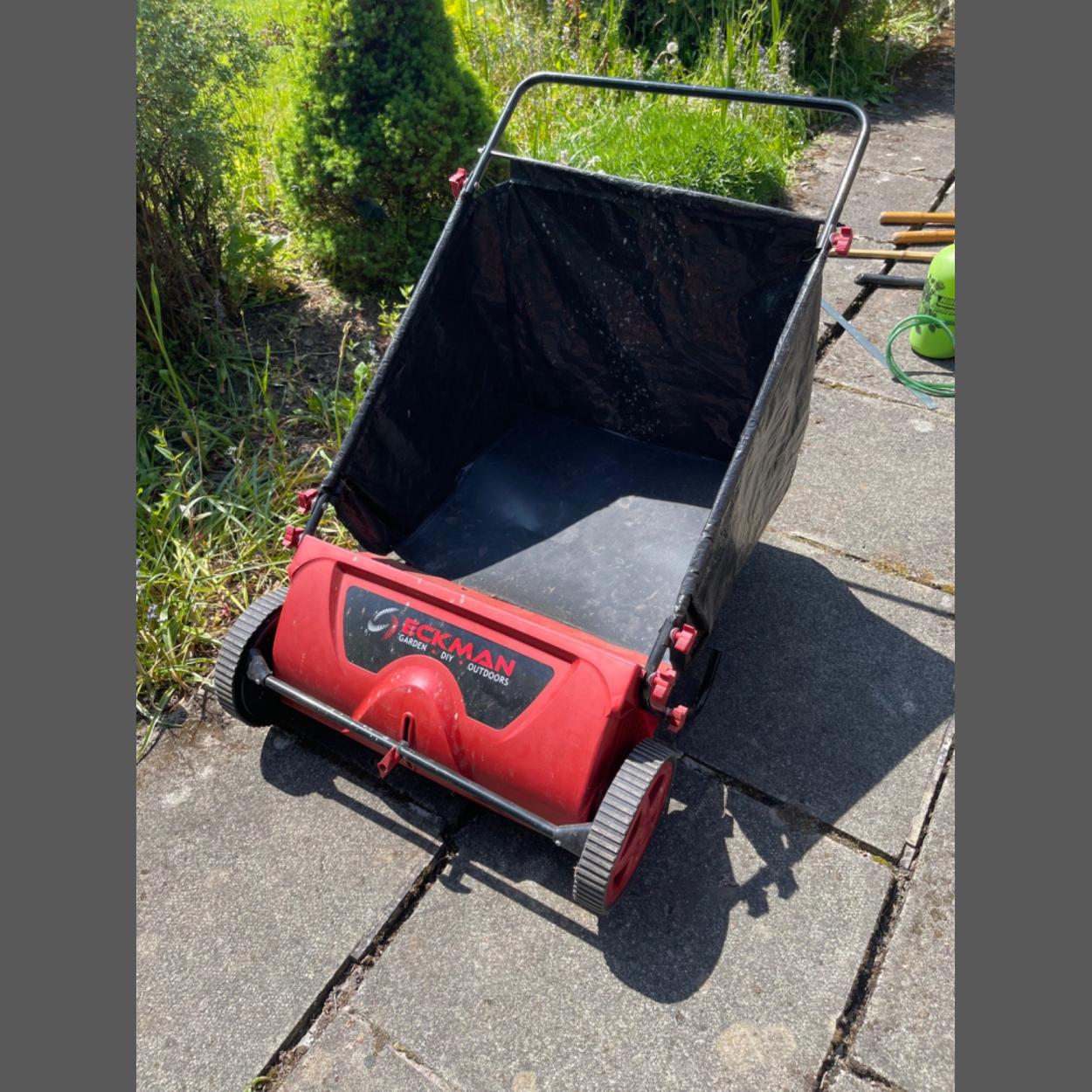 A garden ECKMAN branded leaf wheeled brush with large collecting basket for all those nuisance autumn leaves - apprix 2.5ft wide