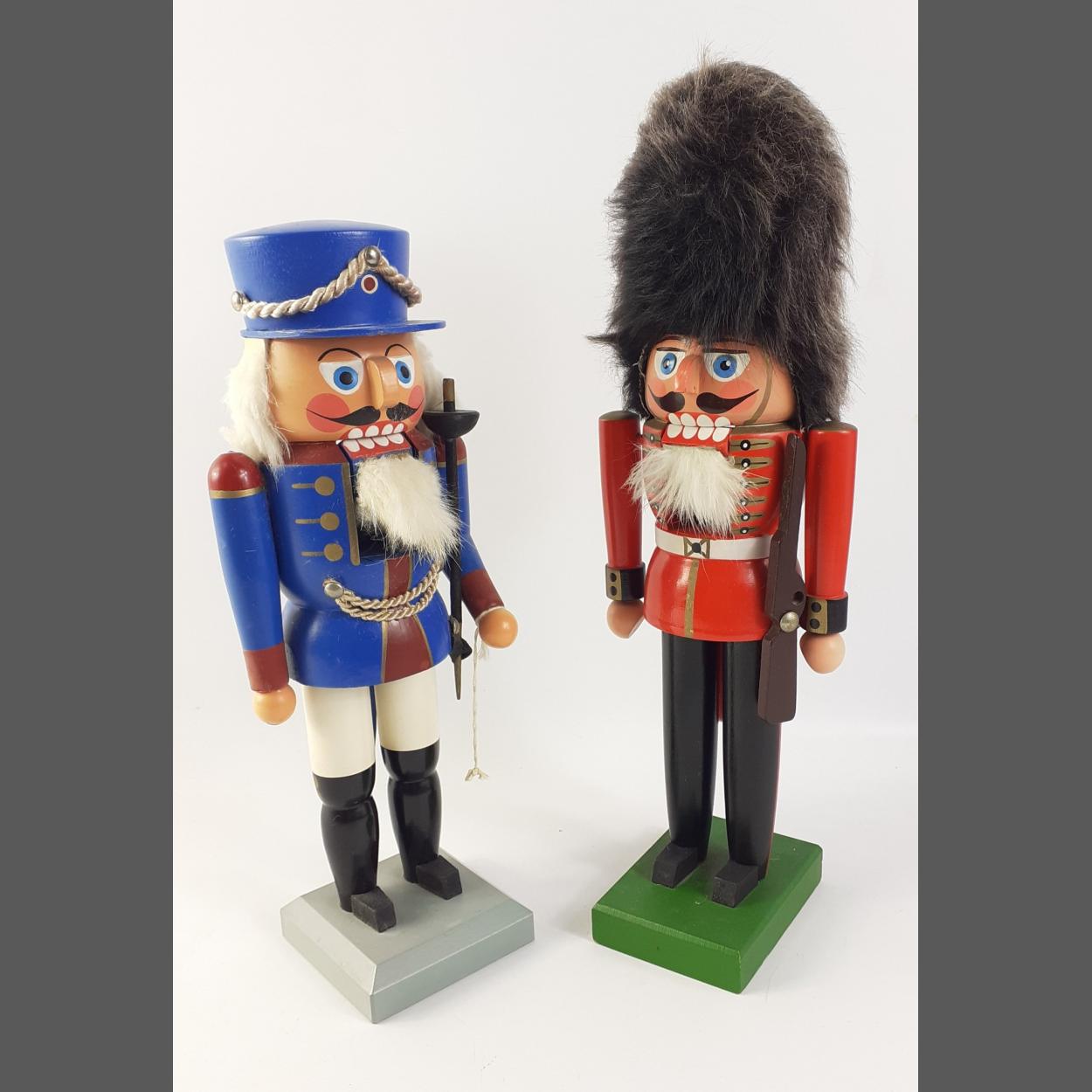 Two wooden painted Christmas soldiers each approx 30cm tall, one a guardsman, the other more French in outlook
