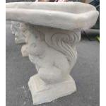 A stonework garden bench on squirrel plinths and curved top 104W x 46D x42H