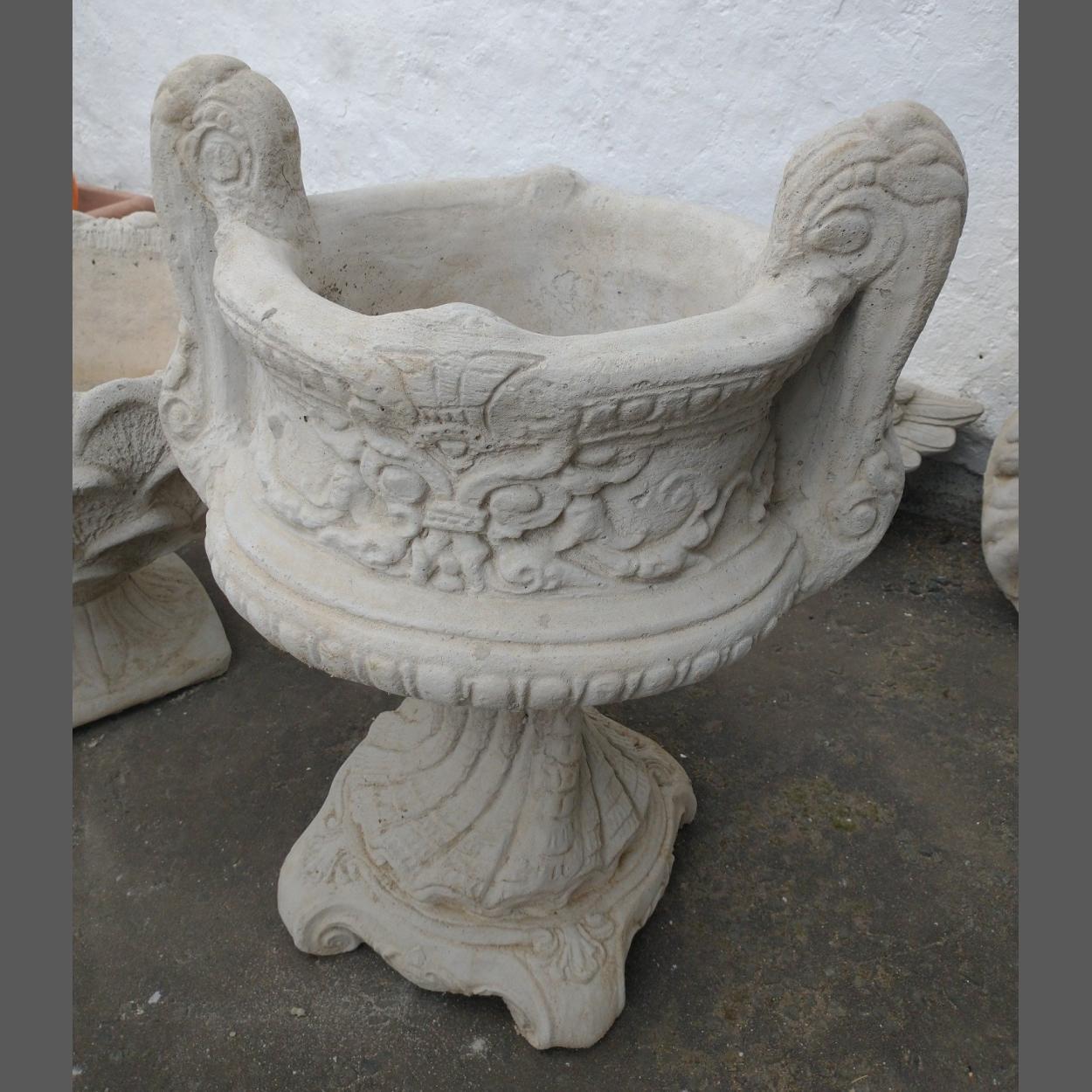 A stonework double-handled urn on a plinth, in 2 pieces, 60cmH x 38cm dia - brand new item