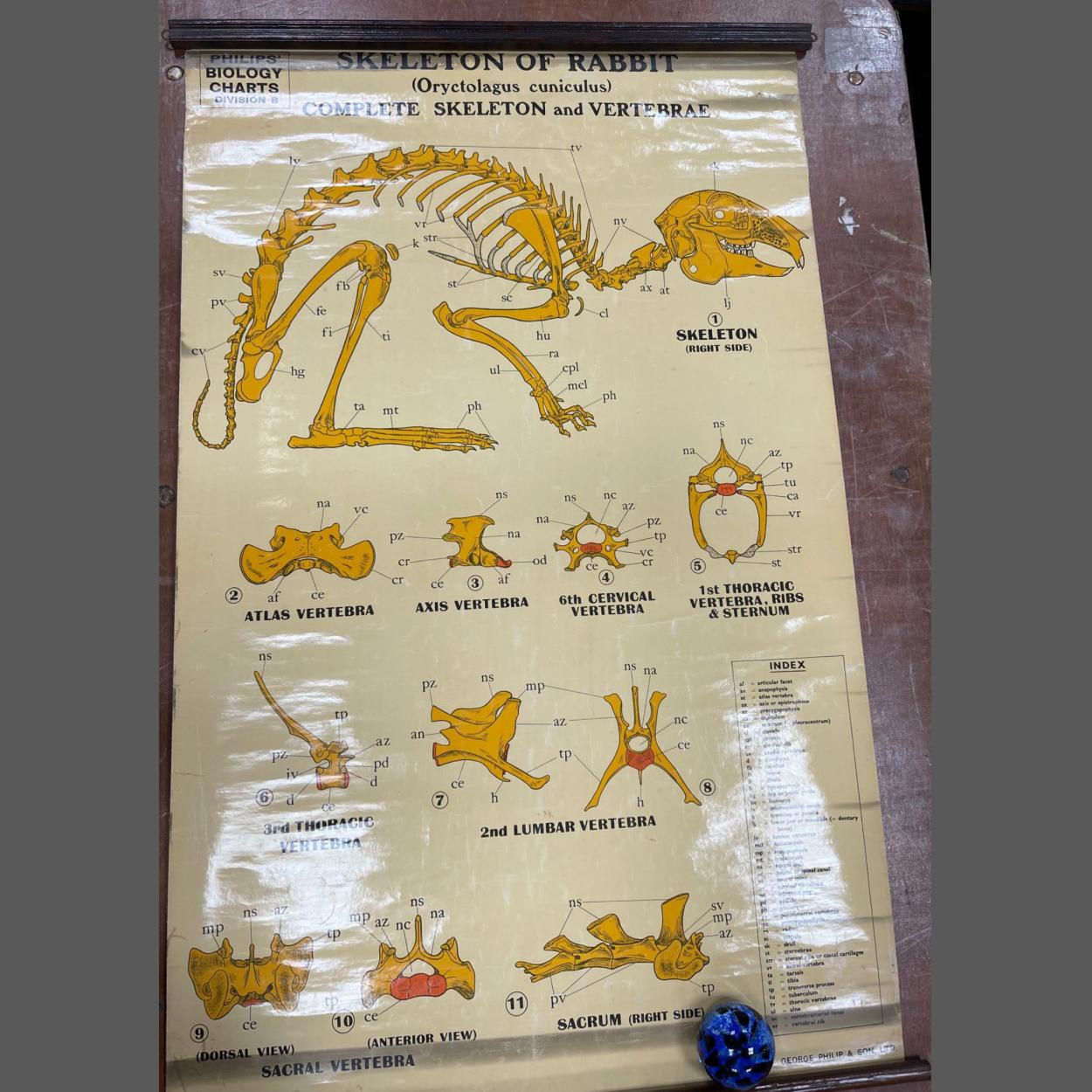 VINTAGE EDUCATIONAL Philips Biology wall chart depicting SKELETON OF RABBIT -