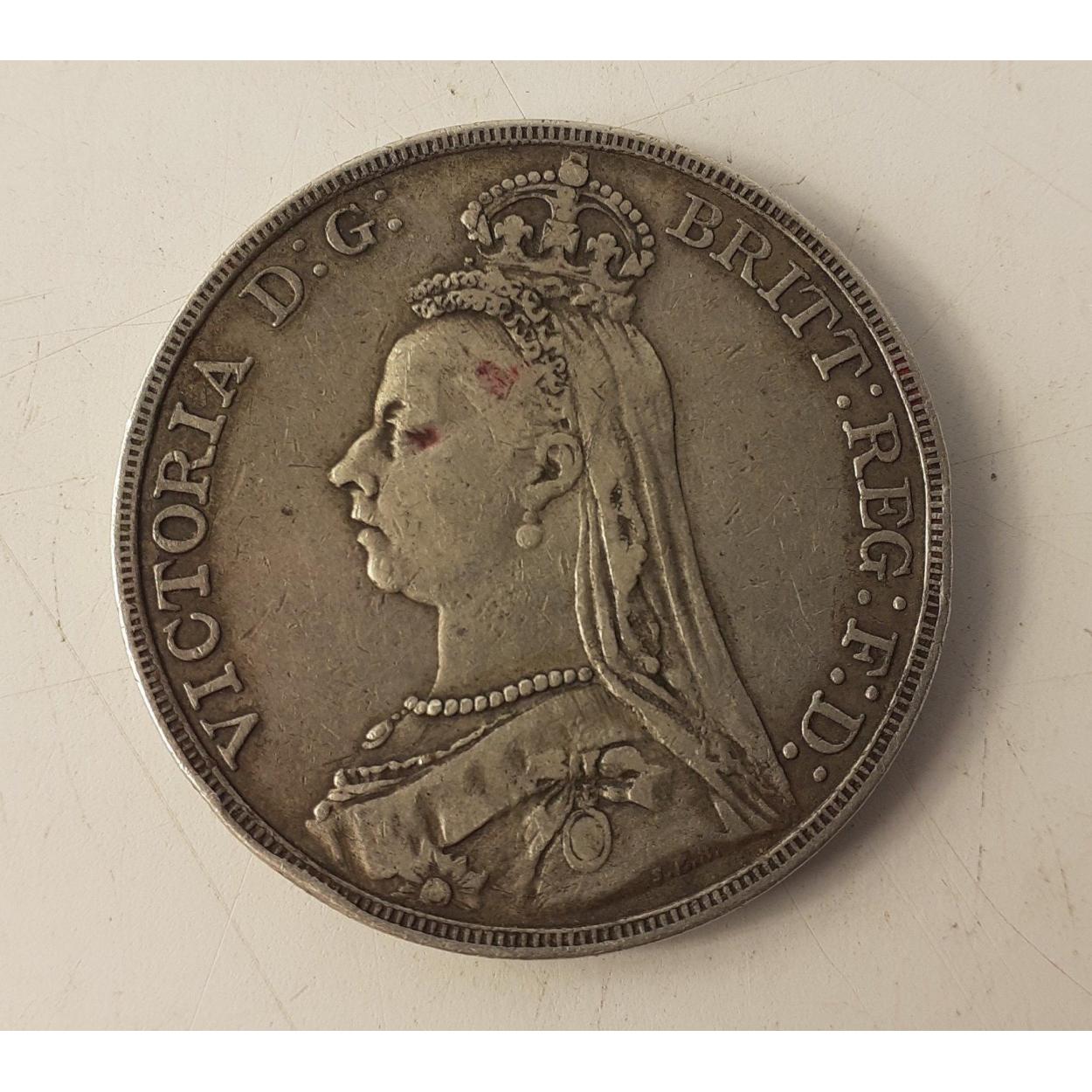 1891 Queen Victoria silver CROWN in good collectible grade. Minor wear to high spots and some dirt round rim. Clear clean fields and nice detail.