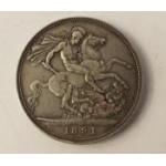 1891 Queen Victoria silver CROWN in good collectible grade. Minor wear to high spots and some dirt round rim. Clear clean fields and nice detail.