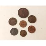 A small lot of seven Victorian coins / tokens of numismatic interest to include heavily tone 1853 Penny with wear to high spots, an 1864 New Brunswick one cent, an 1882 H Half penny with lovely detail as well as some jetons etc.