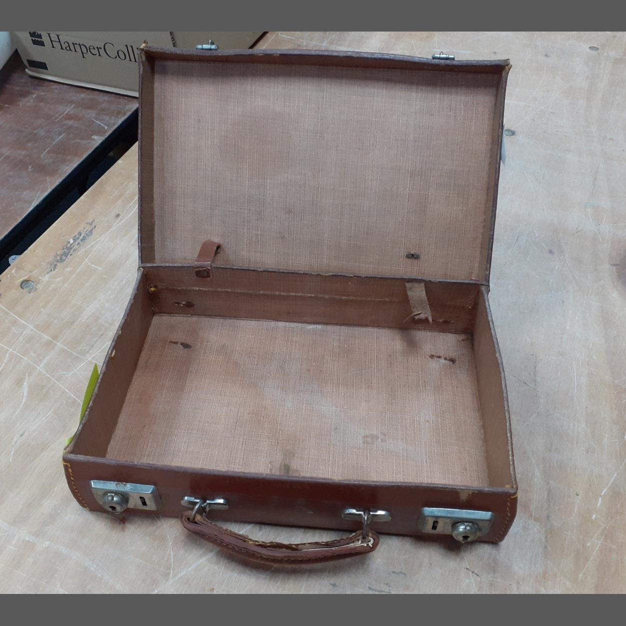 A small leather hand-sewn suitcase measuring 35x22x9cm approx