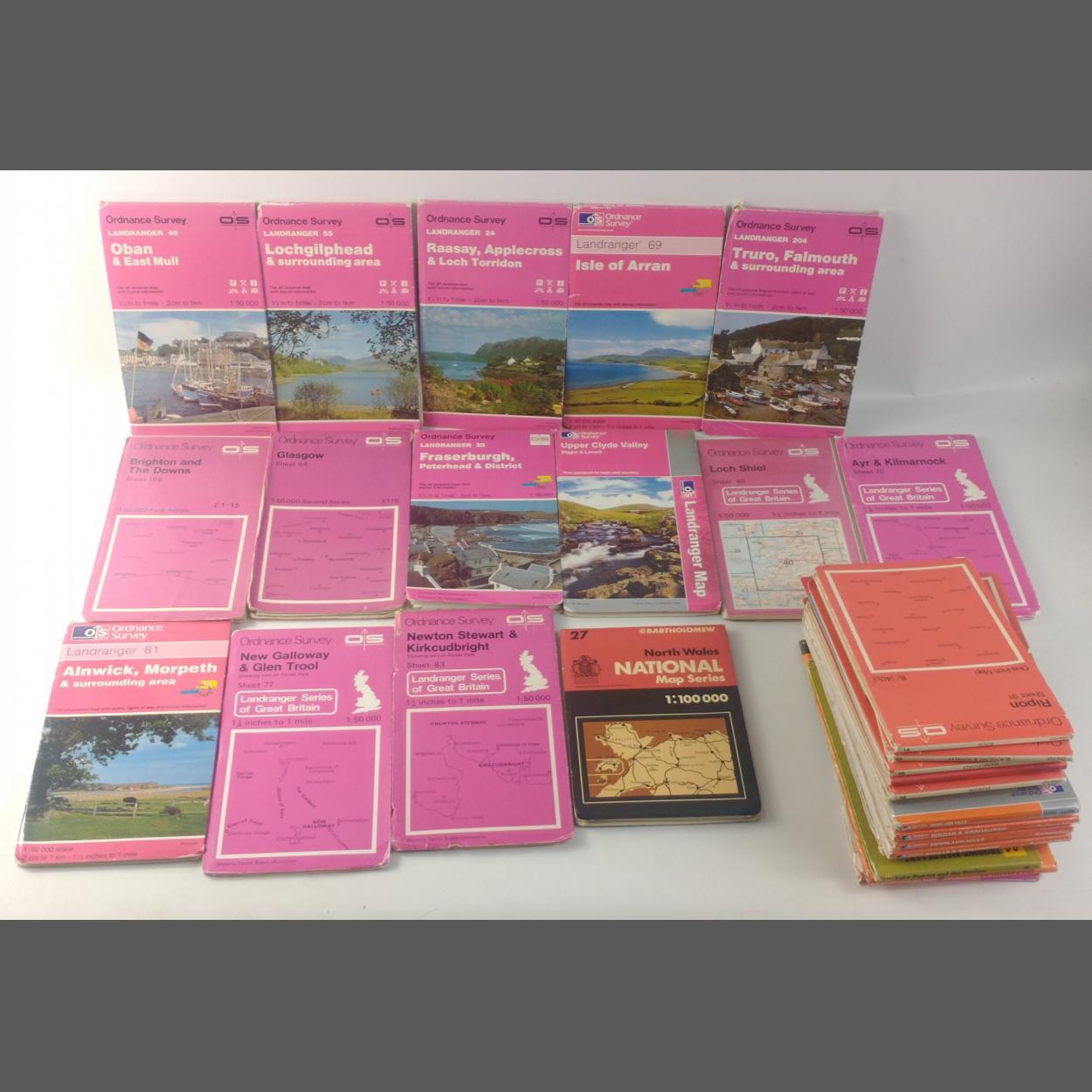 A mixed lot of ORDNANCE SURVEY MAPS to include map publishers such as Bartholomew's and Ordnance Survey Southhampton covering areas such as Scotland - Lochgilphead & surrounding area, Raasay, Applecross & Loch Torridon and Oban, along with areas in England to include Ripon and Wensleydale, Blackburn & Burnsley, South West England and Wales.