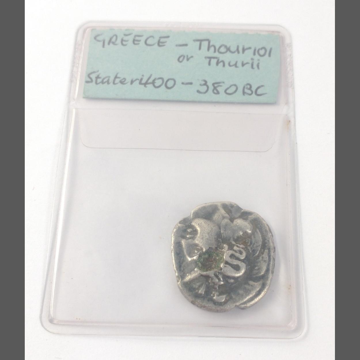 An ancient silver GREEK stater (400-380BC) weight 5.5g approx, 21mm dia, superb detail