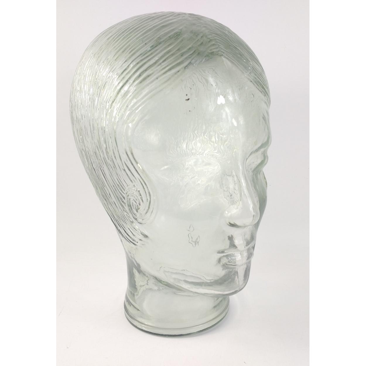 A very unusual pressed glass head of an attractive young flapper like girl with a bob hair cut. Unusual item would make a super lamp. Stands 27cm high approx.