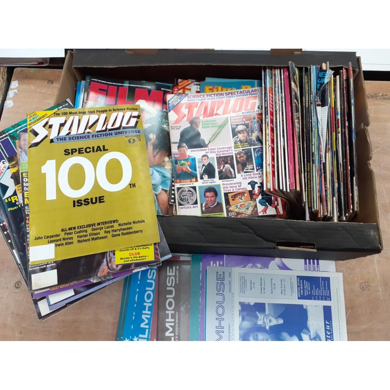 A box of movie magazines to include Star Log, Filmhouse etc