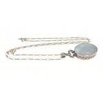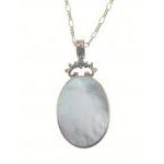 A double-sided mother of pearl and silver hallmarked pendant (3cm long) on a 375 stamped chain (54cm long approx, 3.1g approx), gross weight 11.5g approx