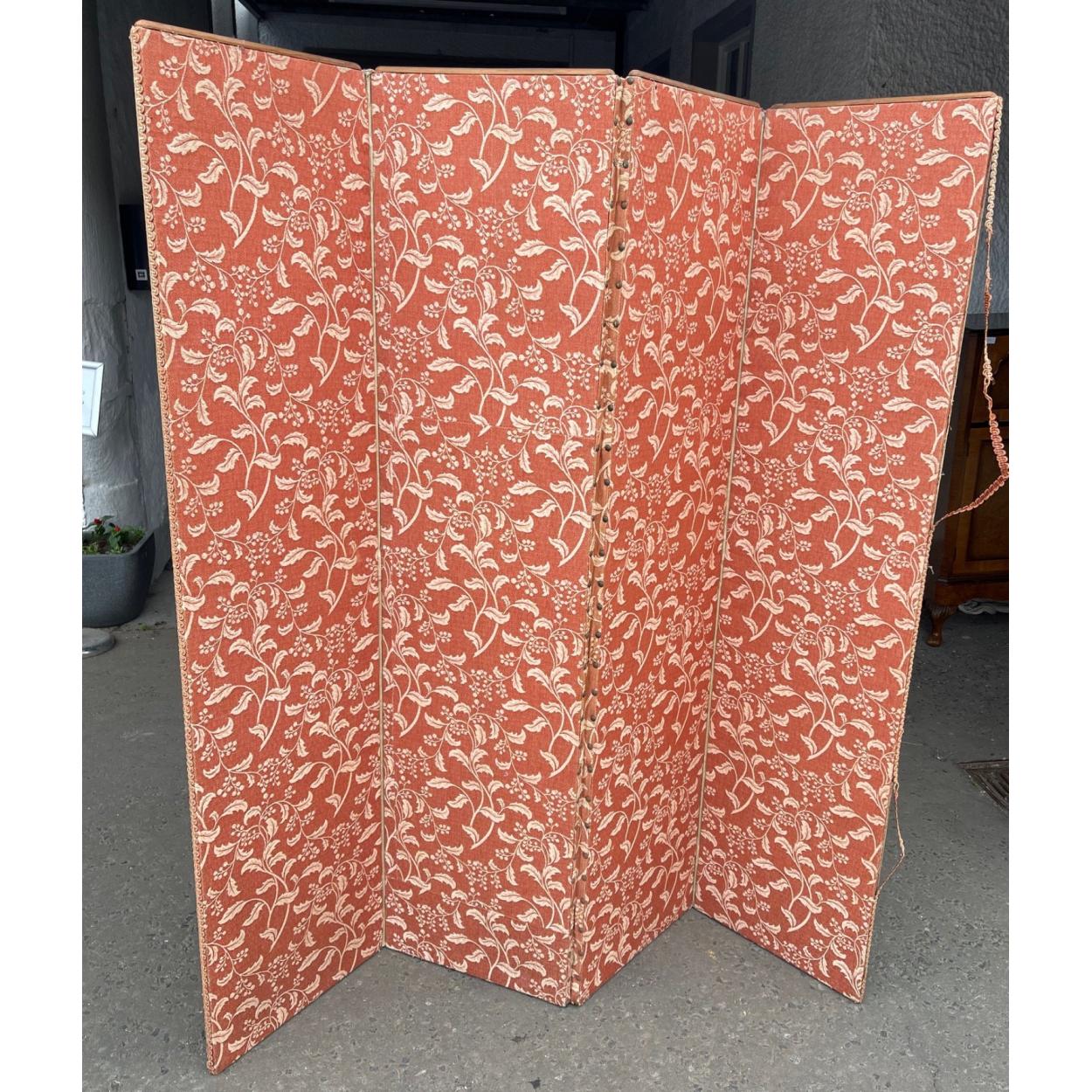 VINTAGE - A room fabric covered in WILLIAM MORRIS inspired four panel folding screen - would make an ideal room boudoir divider - dimensions 65" height x 40" depth approx - in nice condition with only a small piece of border trim requiring re-fixing