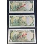 The STATES of JERSEY Banknotes. SPECIMEN £1 note 'AC' Prefix, SPECIMEN £1 note 'RC' Prefix and one other. All UNC.