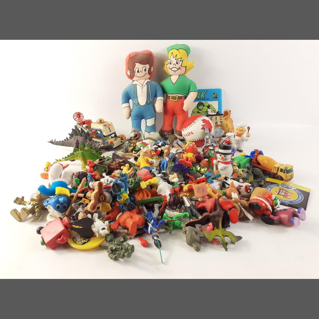 A collection of vintage toys to include BISTO soft toys diecast CORGI MOONBUGGY and lots of plastic model toys.