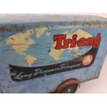 A vintage child's play-worn TRI-ANG lorry. A remarkable survivor with lovely World map graphics on both sides. Back doors intact but missing latch, all original tyres intact. Surface pitting overall. Dimensions 47cm length x height 27cm x depth 19cm approx. A wonderful LINES BROS survivor.