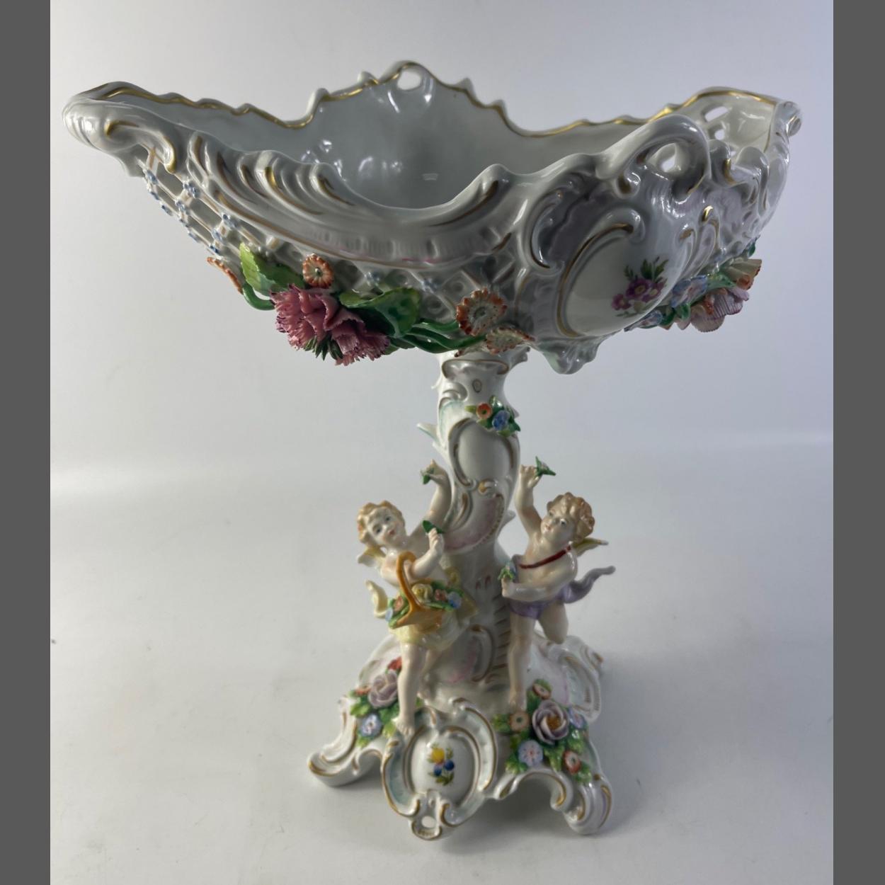 A SUBSTANTIAL SITZENDORF porcelain colourful raised bowl with CHERUB figures