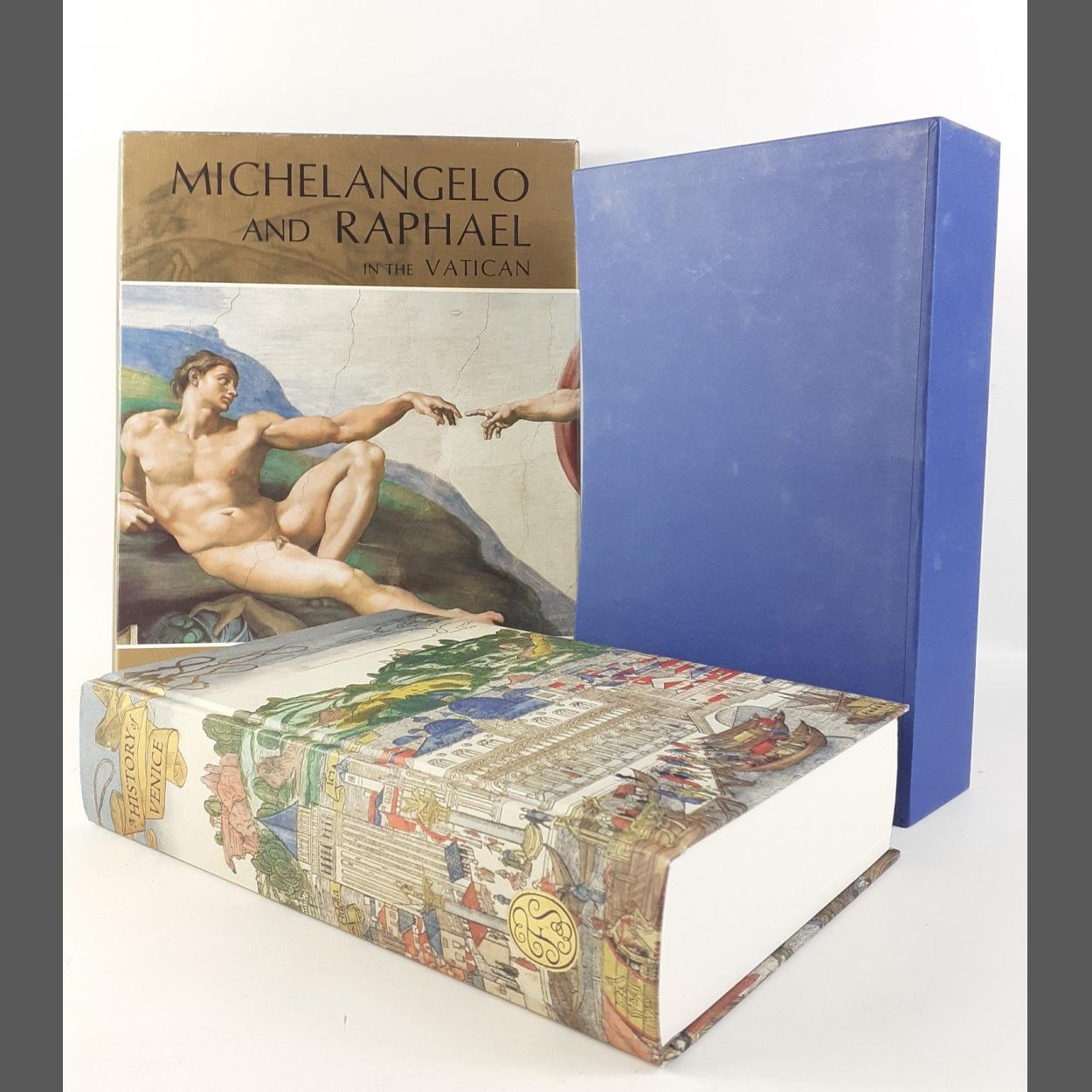 The FOLIO SOCIETY edition of A HISTORY OF VENICE by John Julius Norwich (2007) and MICHELANGELO AND RAPHAEL in the VATICAN published by the Vatican Museum comes with dust jacket in a slip case in unread condition