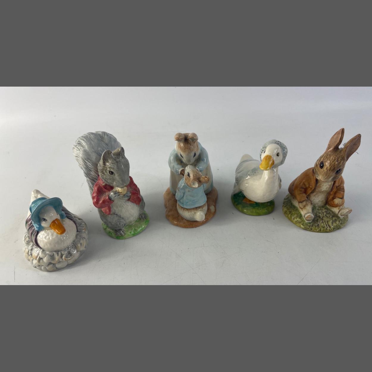 From the BEATRIX POTTER collection by BESWICK - Benjamin Bunny Sat on a Bank, Timmy Tiptoes, Jemima Puddleduck, Rebeccah Puddleduck, and Mrs Rabbit and peter