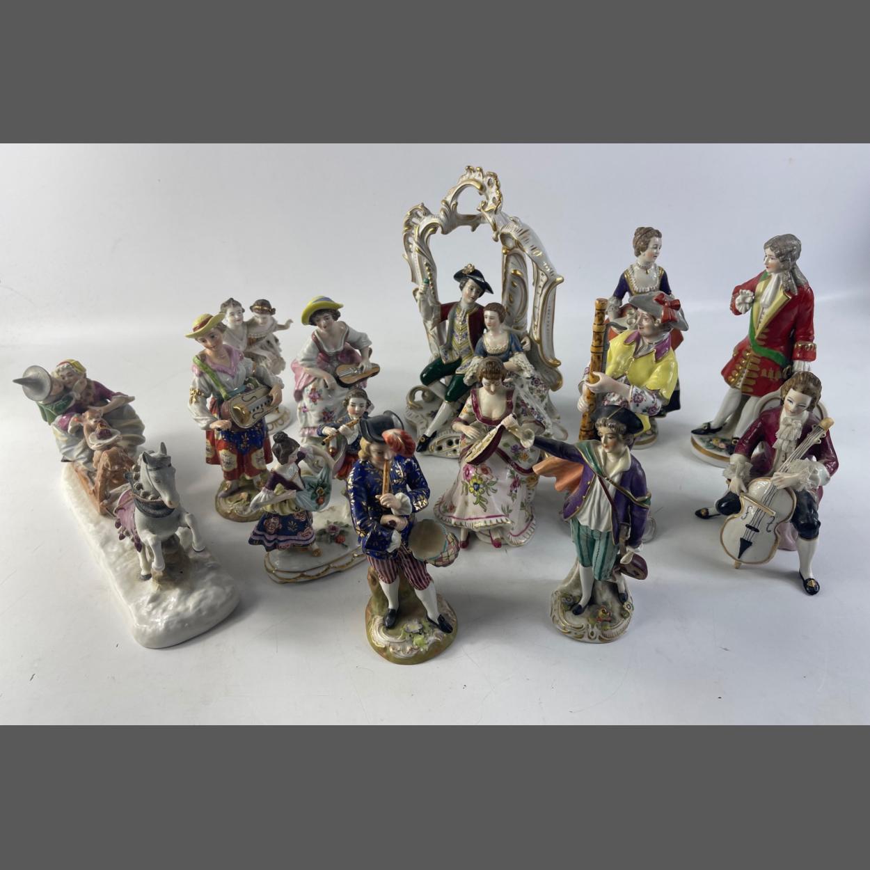 ANTIQUE - A collection of mostly German porcelain ornamental figures to include MEISSEN, LUDWIGSBURG and much more - tallest figure is 23cm height x 17cm width approx