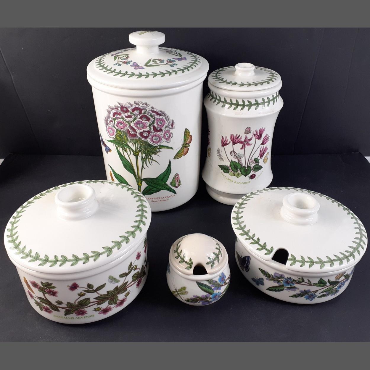 PORTMEIRION Ceramics - A collection of five storage ware largest DIANTHUS BARBATUS 22 high. Largest with seal, all in good condition.