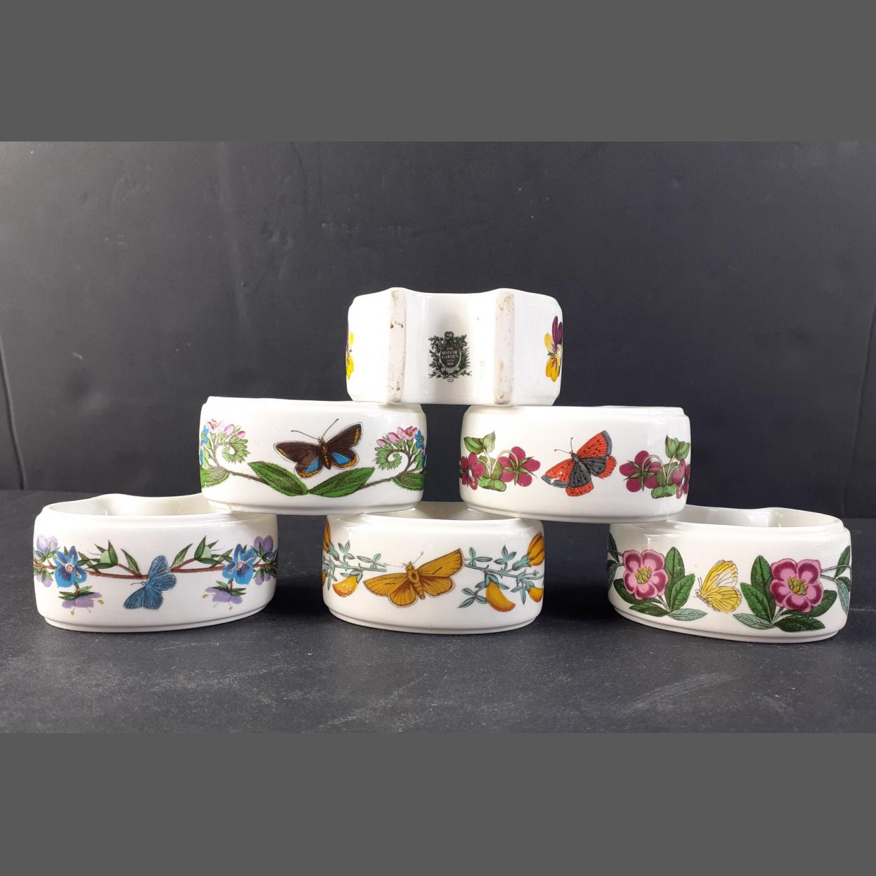 PORTMEIRION Ceramics - A collection of freestanding Botanic Gardens pattern six napkin rings of various designs each 7cm across. All in good order with no damage.