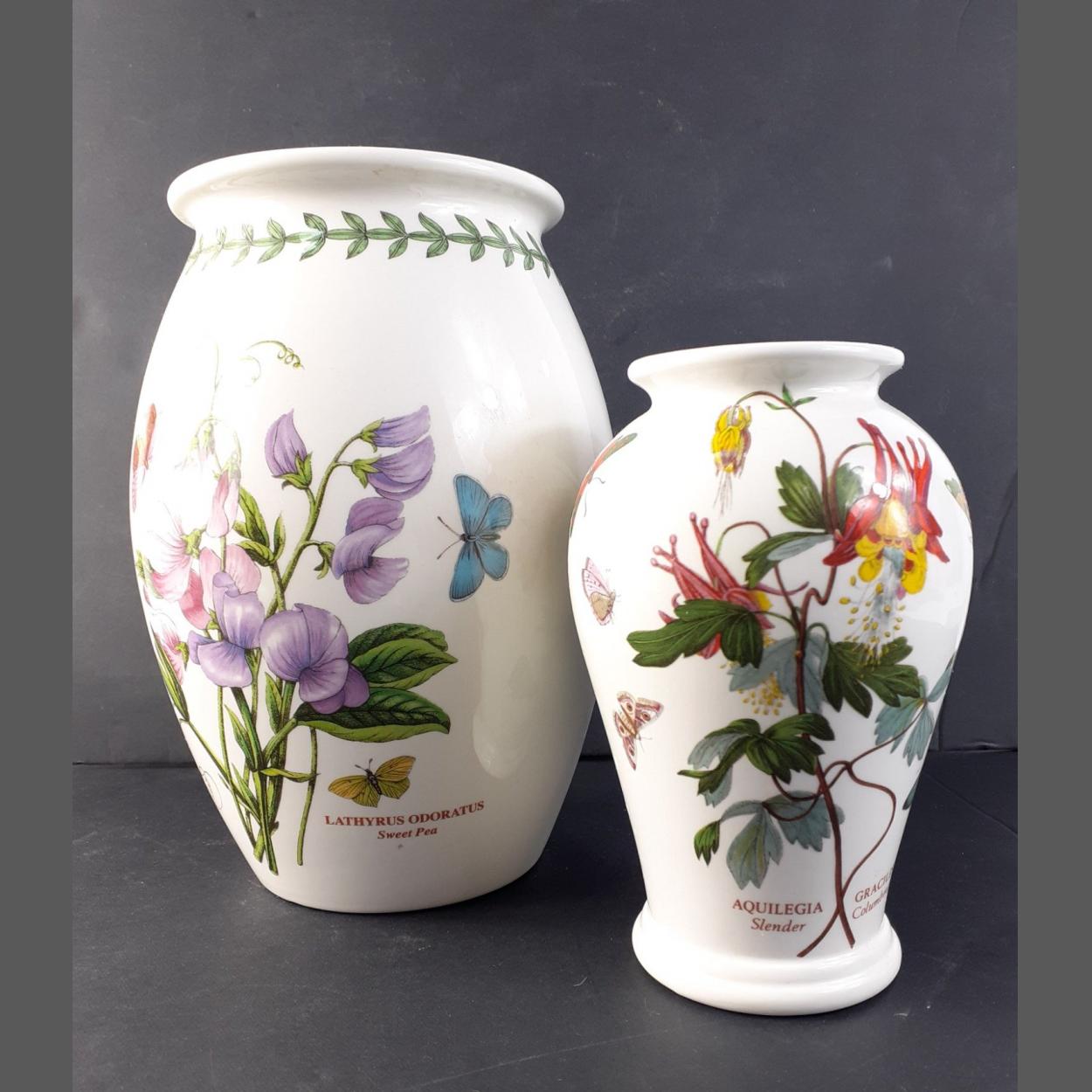 PORTMEIRION Ceramics - Two vases in Botanic Garden range. Taller vase 23cm, the smaller 17cm. SWEET PEA & COLUMBINE designs both in good condition.