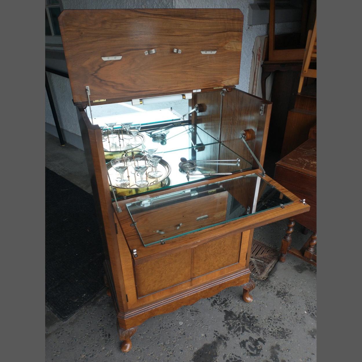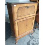 A vintage 1950s cocktail cabinet with a burr walnut veneer, measuring 78cmWx39cmDx120cmH also includes some cocktail making tools