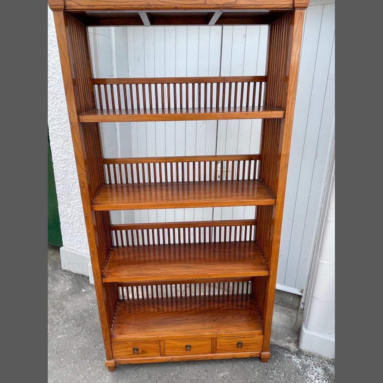 SUBSTANTIAL! Purchased from The Orient this tall display cabinet or bookcase made from local hardwood - four shelves - dimensions 1m wide x 198cm tall x 28cm wide
