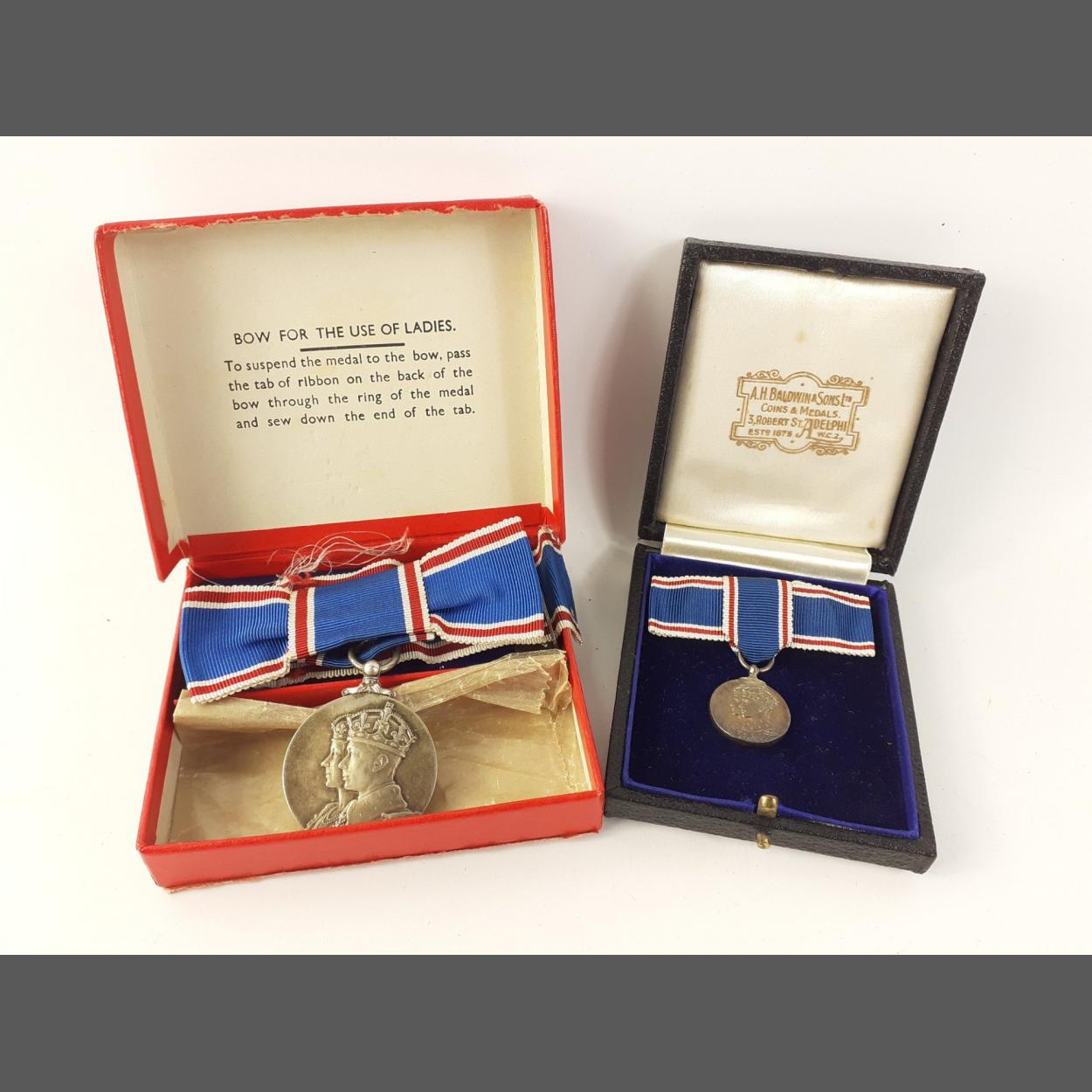 A boxed 1937 Coronation medal mounted for wear with cased miniature. Both in excellent condition.
