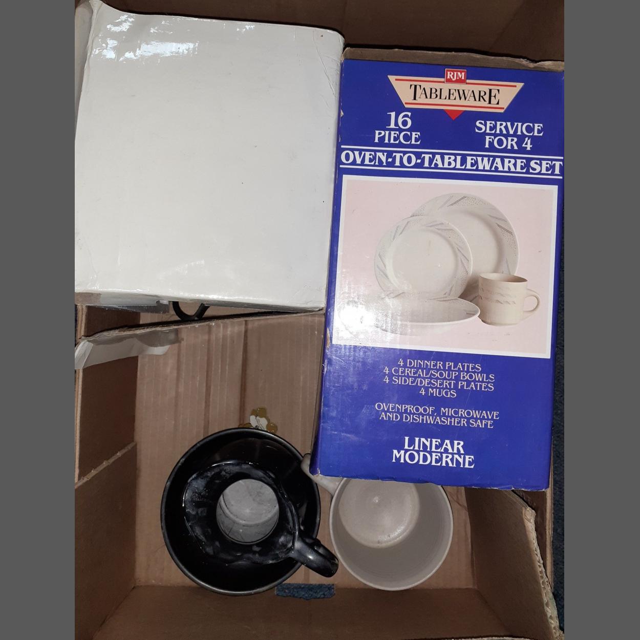 An RJM 16 piece dinner service for four, and a one-person slow cooker