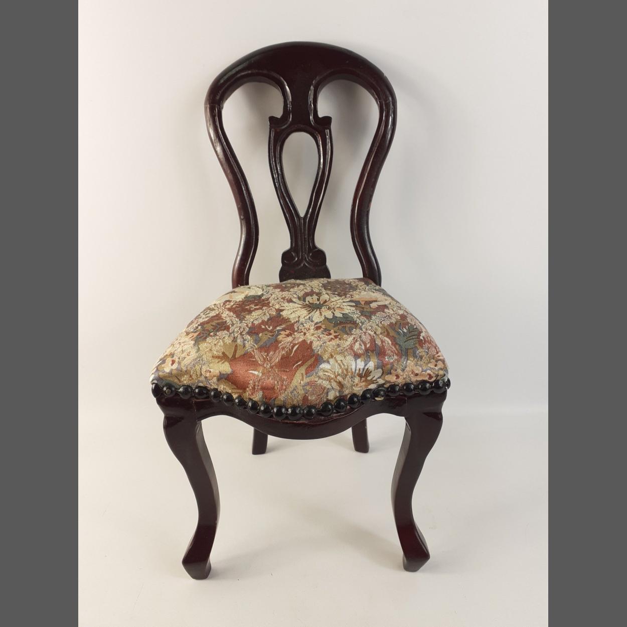 A very pretty little dolls chair standing 43cm high this would suit a lovely teddy bear or large doll display. Clean fabric and nicely modelled.