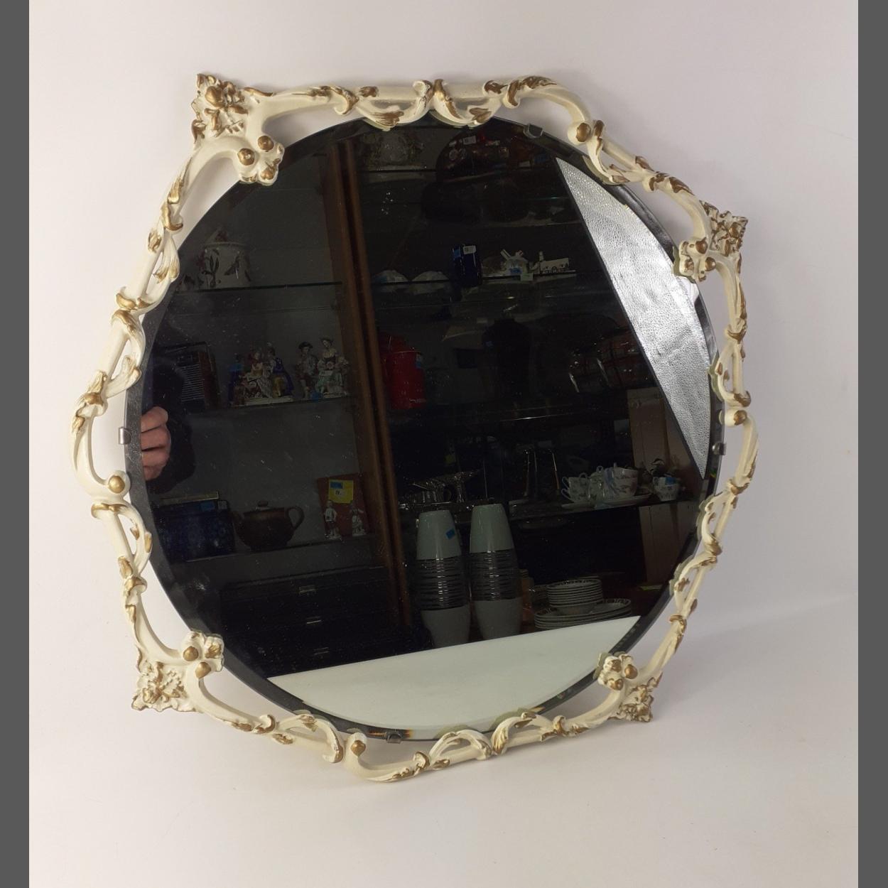 A circular wall mirror approx 55cm dia with a metal cream and gilt frame