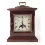 A mantelpiece clock with a moving moon disc, standing approx 33cm high, sold by H. Samuel, in original box