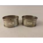 A pair of pretty silver oval engine turned napkin rings, hall marked John Rose, Birmingham 1967. Total gross weight 40g approx. Monogrammed M and A and in good condition.