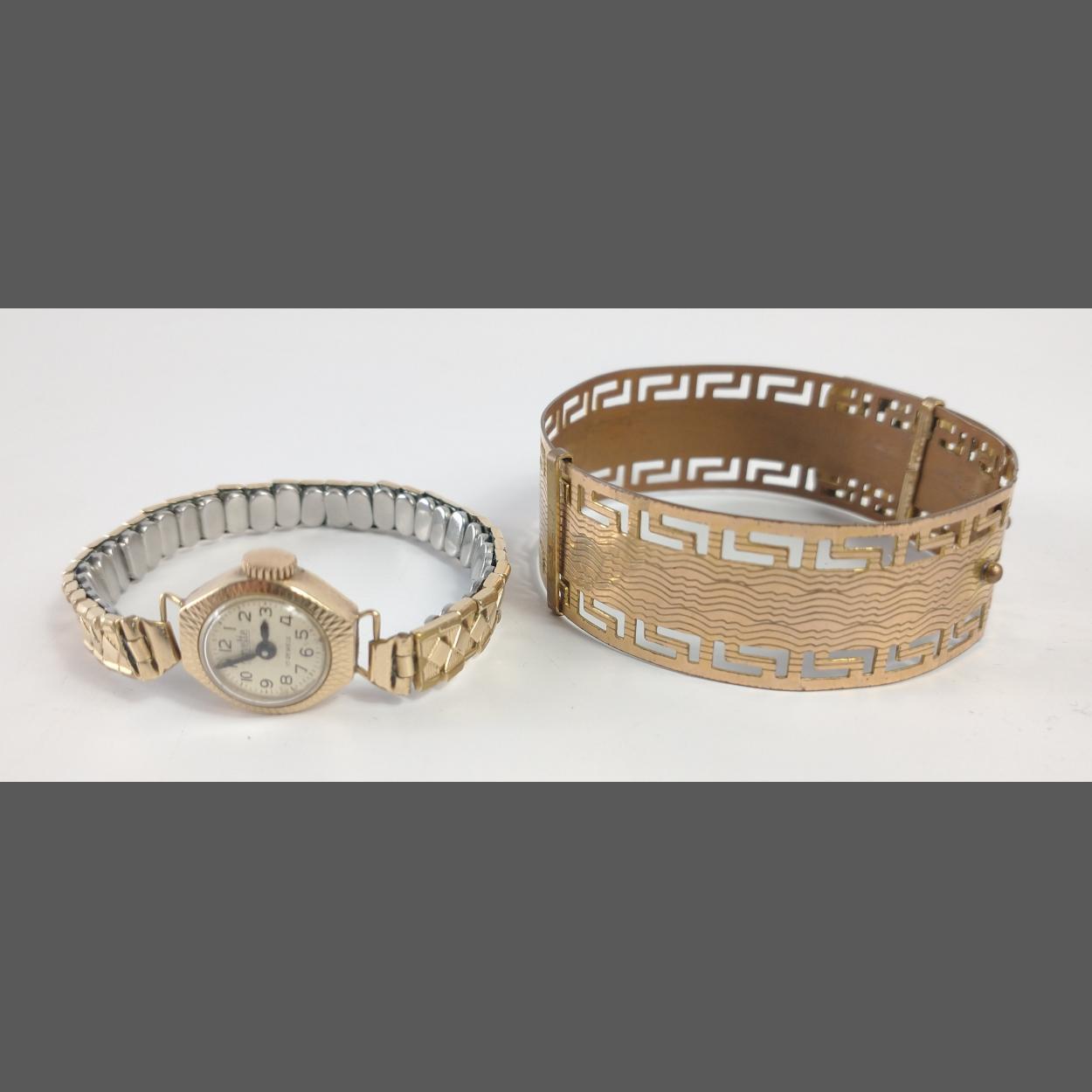 A CORVETTE 17 jewel stamped 375 ladies cocktail watch with a rolled gold bracelet, gross weight 13.50g approx plus a rolled gold extendable bracelet