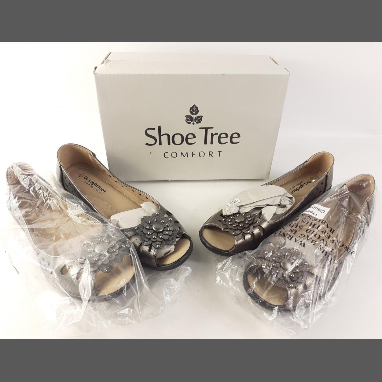 Two pairs of DR LIGHTFOOT comfort concept shoes both size 7/Eur 40, one pair each of bronze and silver