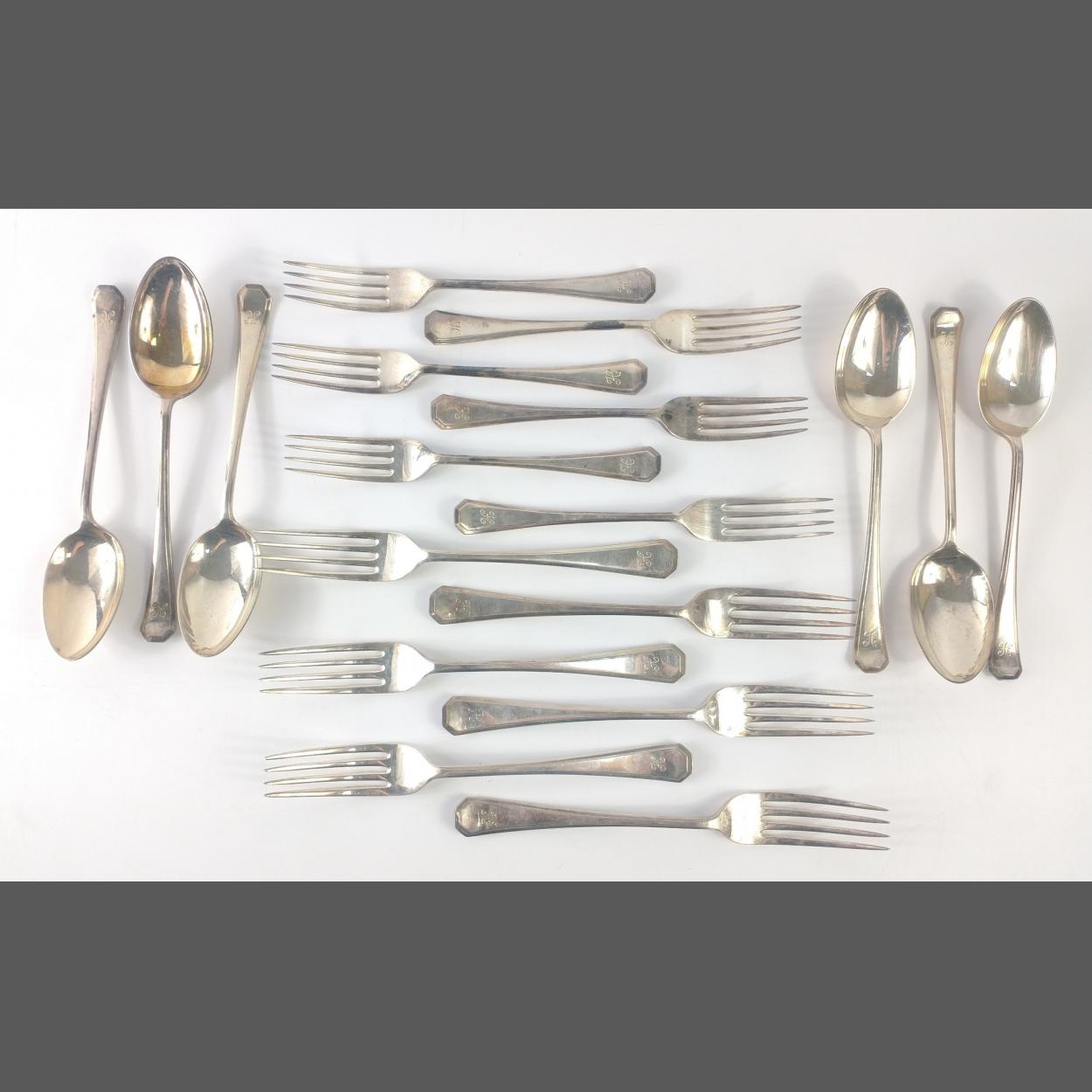 Sheffield 1964 silver cutlery of the same pattern comprising 6 forks each 20cm (weight 446g approx), 6 forks each 18cm (318g approx) and 6 spoons at 18cm (weight 335g approx)