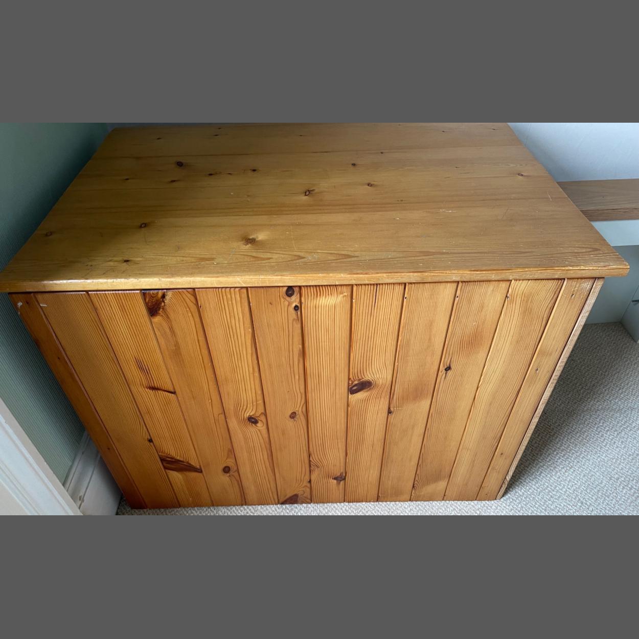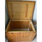 A large pine lidded storage box - was used for storing bed linen etc - dimensions 2.5ft square approx