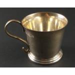 Small SILVER Hallmarked DUBLIN 1973 (The Royal Irish Silver Co) this has a special additional mark to celebrate Eire's entry into the European Community, tapered cup with handle - top rim 7.5cm diameter, bottom rim 6cm x height 6.5cm - weight 154g
