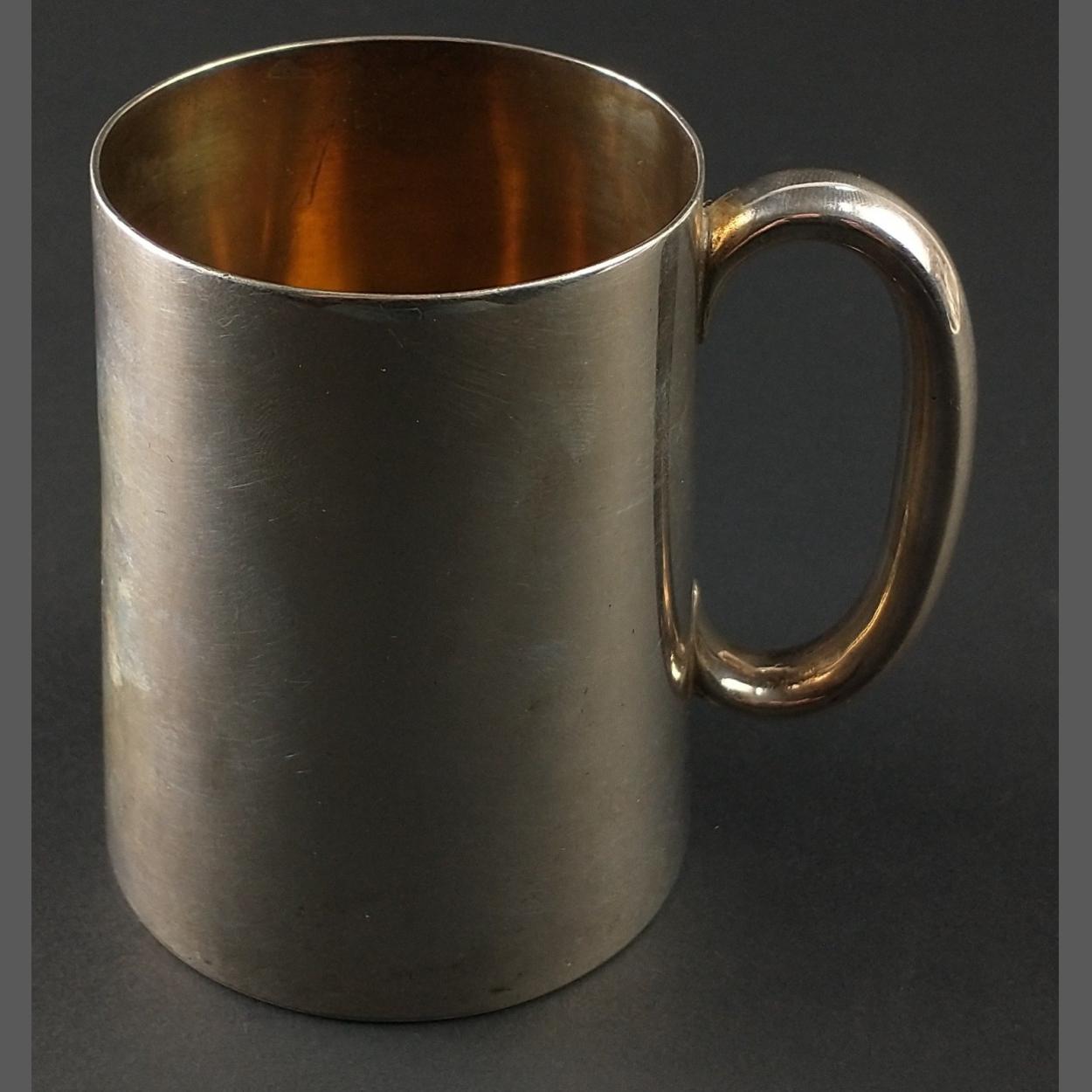 Small SILVER Hallmarked London 1891 by Martin & Hall tankard - dimensions of tankard 6.5cm top and bottom is 7cm diameter approx x 9.5cm tall - weight 185g approx