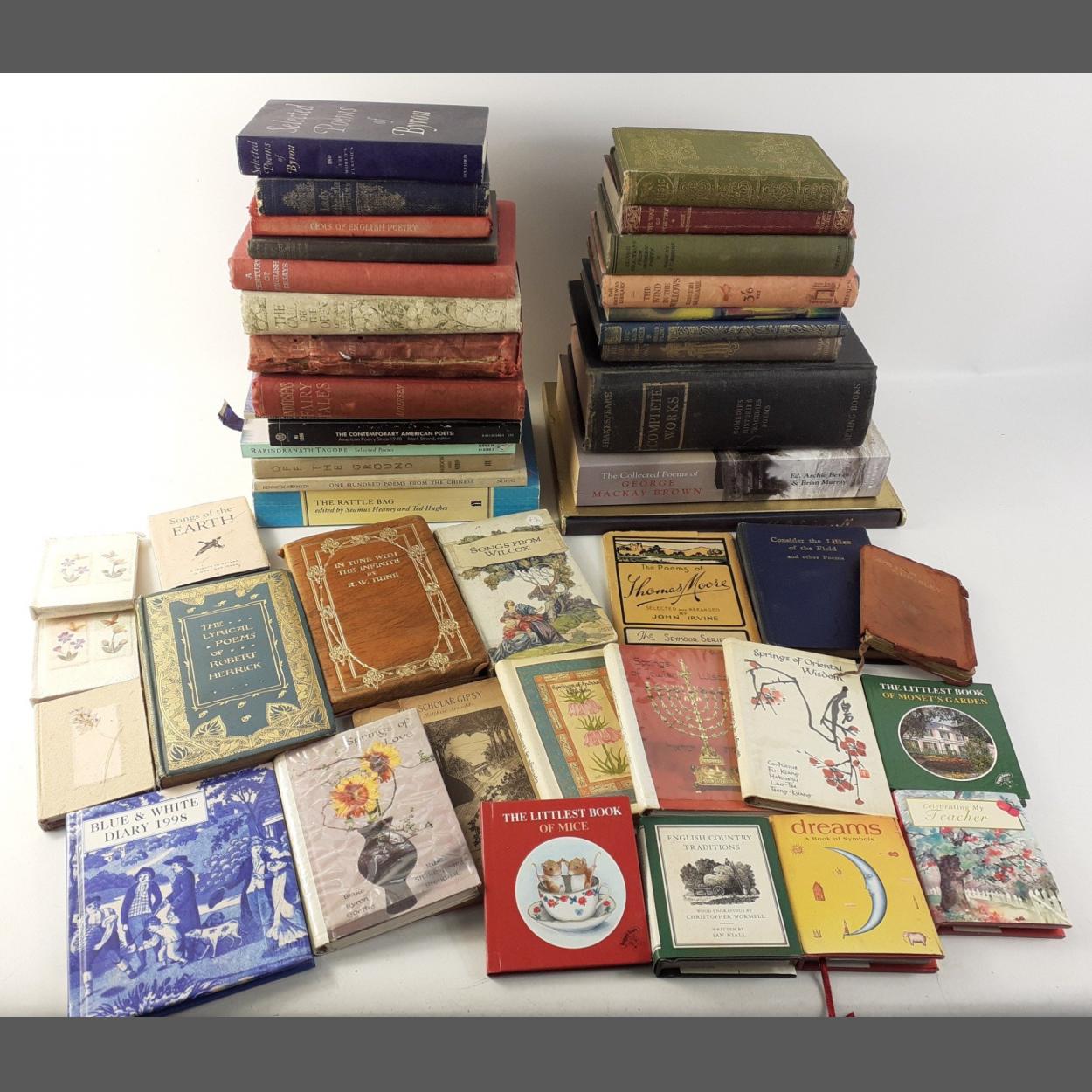 For LOVERS of POETRY! A collection of poetry books, fairy tales and plays to include Shakespeare, Robert Herrick, Seamus Heaney, Ted Hughes, George Mackay Brown and Thomas Moore among others. Condition of books varies.
